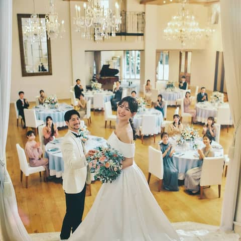 30~137名まで入る披露宴会場で専用のガーデンも併設しています2025年8月には全館リニューアルを行いオープンキッチンが新設された披露宴会場です
