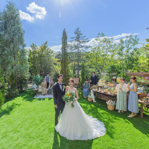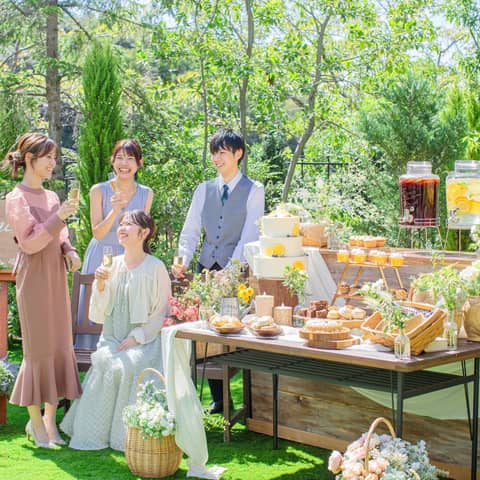 併設のガーデンでは、デザートビュッフェやゲストとの写真撮影などはもちろん、お二人のご希望の演出があれば叶えられますので、お気軽にご相談くださいませ。